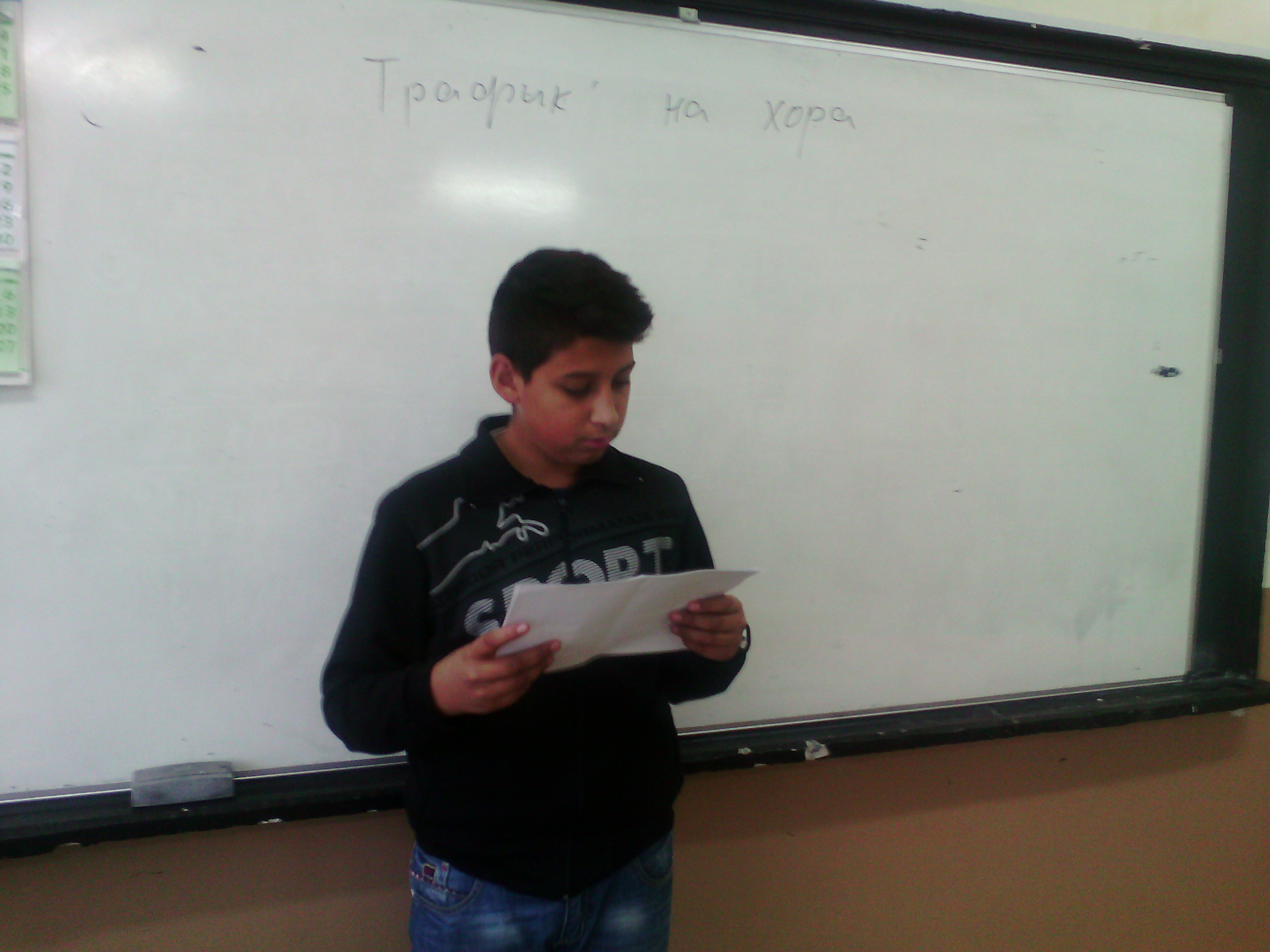 На 19.10.16г в часа на класа 6в клас отбелязаха европейския ден за борба с трафик на хора. Учениците подготвиха информация, която беше представена пред техните съученици